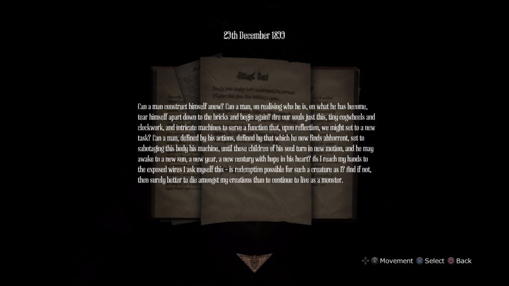 Eine der Schlüsselpassagen, um Mandus zu verstehen, findet sich nicht in A Machine for Pigs, sondern im herunterladbaren Zusatzinhalt Justine für den Vorgänger, Amnesia: The Dark Descent. “The aristocracy doesn’t need to know right from wrong. We are always right“ statiert Justine Florbelle in dem von Valve in Auftrag gegebenen Portal Tie-In, das die Grundstruktur von Valves First Person Puzzler in ein Horrorspiel übersetzt. Justine als Tochter des Adels und Mandus als Industriemagnat, einem de facto-Aristokraten des ausklingenden neunzehnten Jahrhunderts, haben jeden Bezug zu gesellschaftlich verhandelten Moralitätsstandards verloren, wenn sie ihn je hatten: Die junge Justine durch die jahrelangen psychologischen Tests durch ihren Vater, der vermeintlich gemeinwohle Mandus spätestens durch sein in Mexiko zugezogenes Fieber und die Vision des Great War. Justine steht dabei gar stellvertretend für den Marquis de Sade, Autoren der Novelle Justine, an der sich der gleichnamige Zusatzinhalt konzeptuell bedient, und der einen solchen aristokratischen Amoralismus in seinen Werken verkörperte, die schließlich dem Sadismus seinen Namen gaben.